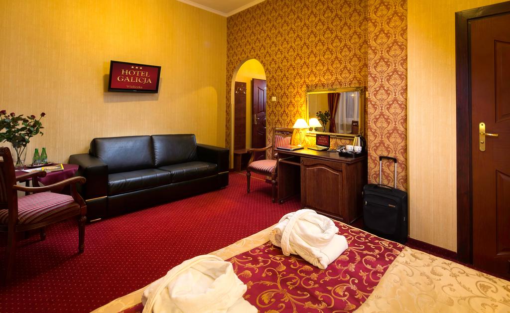 Отель Galicja находится в городе Величка, всего в 300м от соляной шахты. В комплексную программу оздоровления включены пакеты с лечением в соляной шахте. Пульмонологическая реабилитация проходит в виде 6 часовых процедур в шахте под наблюдением врача. Также в отеле предлагаются различные SPA-программы.