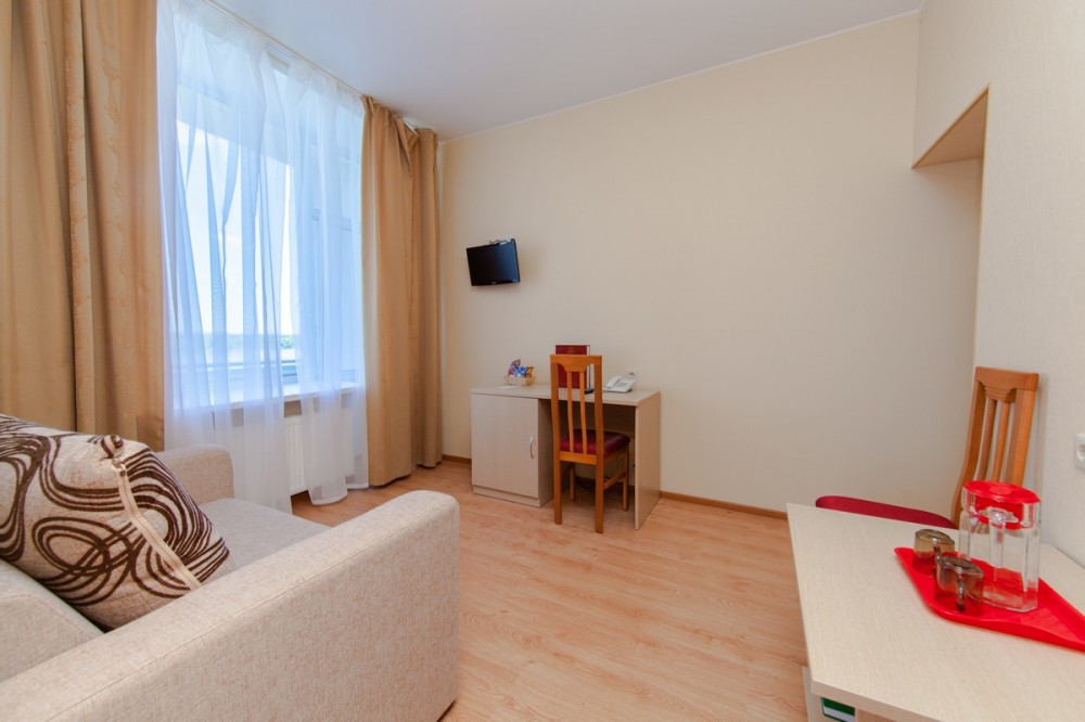 * Номера представлены категориями «стандарт», «студия и «люкс». В любой из них имеются все необходимые удобства (ванна или душевая кабинка, санузел, телевидение, телефон, Wi-Fi).