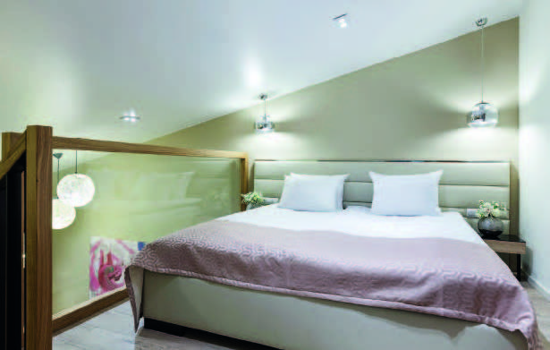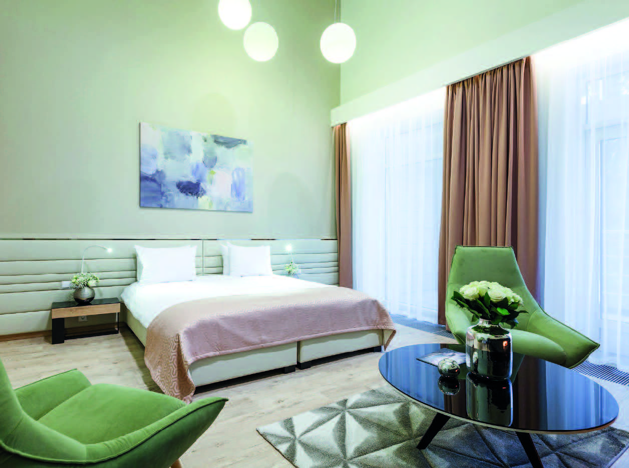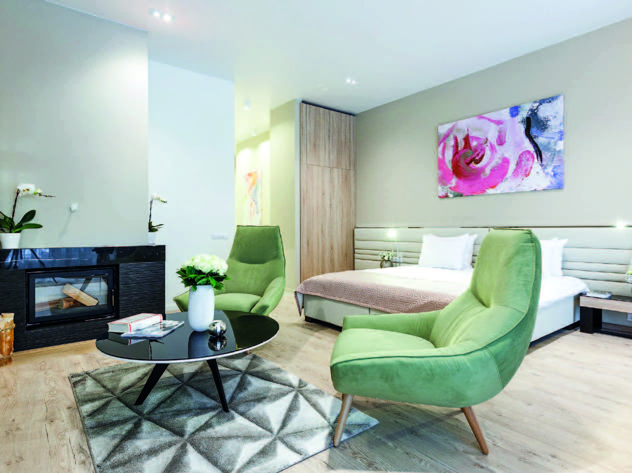 В номерах отеля «Первая линия» имеется отдельная процедурный кабинет, гостиная зона и камин. Из окон открывается вид на Финский залив. В ванной комнате установлена душевая кабина с функцией хаммама и предоставляются халаты и тапочки.
