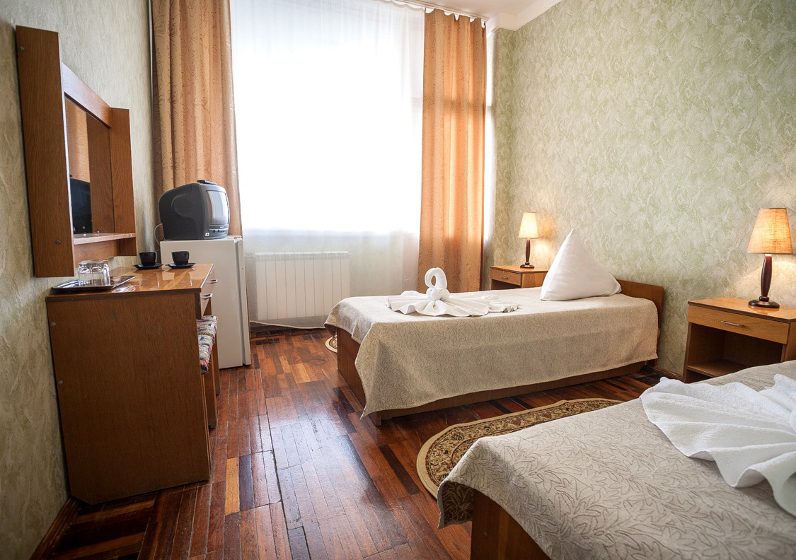 Санаторий состоит из двух корпусов – в одном из них все номера имеют вид на море. Номера в этом корпусе оборудованы балконами.