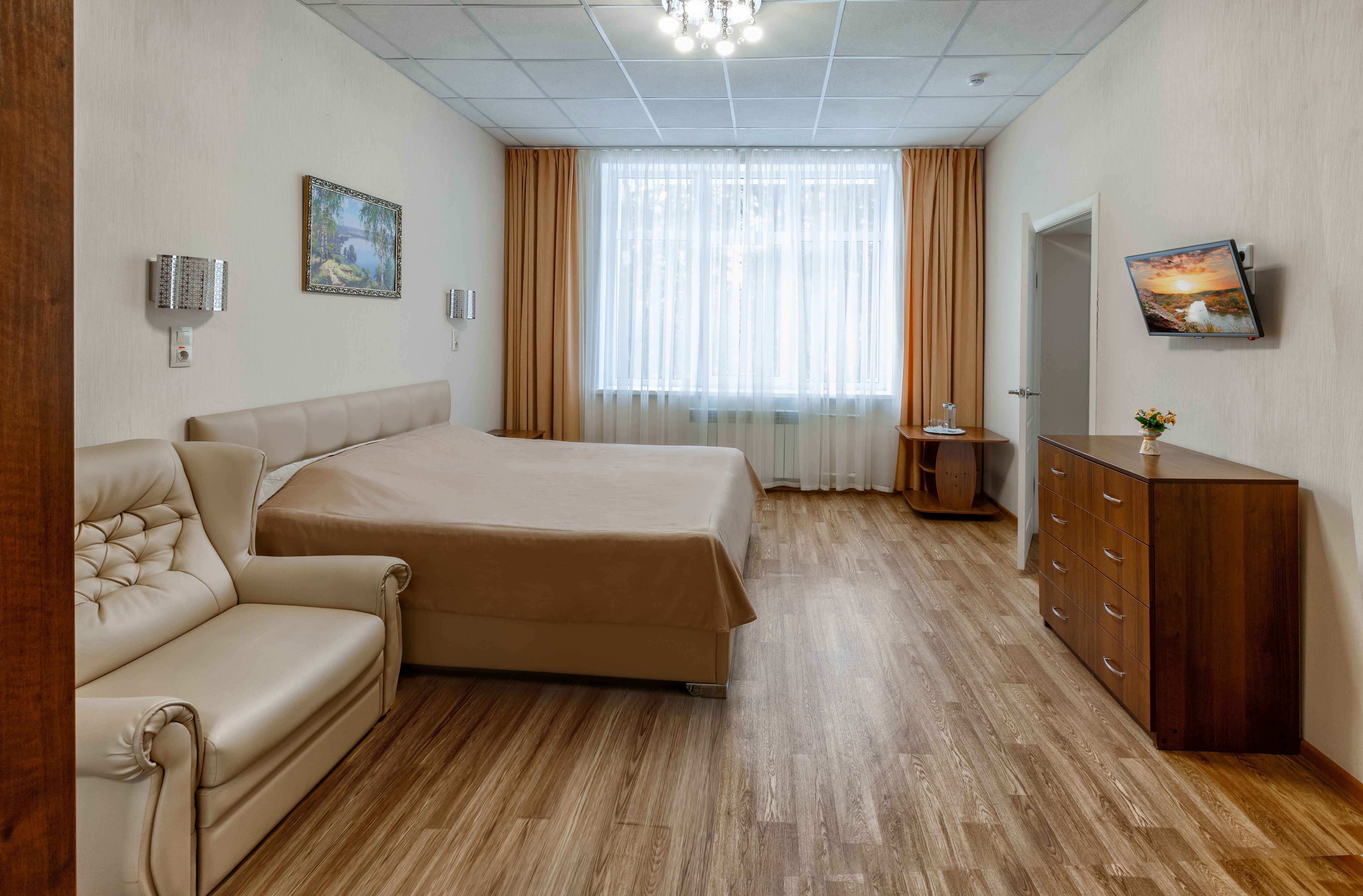 Когда вошли в главный корпус, я приятно удивилась: несмотря на вульгарный интерьер, кость мамонта (конечно, настоящую))) и резкий запах медикаментов, атмосфера показалась нейтрально-приятной. Девушка искренне вежливым тоном продиктовала пароль от WIFI, предложила на удивление вкусный кофе и большую часть бумажной возни взяла на себя. Нас проводили в номер, показали две маленькие комнаты. За выдавленными вежливостями администратора Натальи чувствовался глубокий подтекст: холодности и лицемерия.
