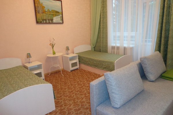 Размещение: 2-х местный номер -; две кровати, стол, стул, шкаф, телевизор, холодильник, душ, санузел или номер "люкс" двухкомнатный: гостиная с удобной мягкой мебелью, телевизор, холодильник, телефон, видеомагнитафон; спальня: кровать, стол, стул, шкаф; душ, санузел.