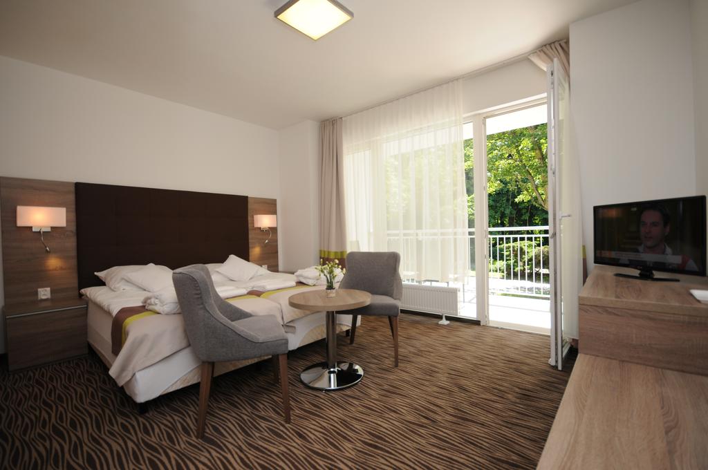 Во всех номерах курортного отеля есть письменный стол, телевизор с плоским экраном и собственная ванная комната. В распоряжении гостей санатория Perla Baltyku номера с видом на море, балконом, шкафом и чайником. Для гостей сервируется завтрак «шведский стол».