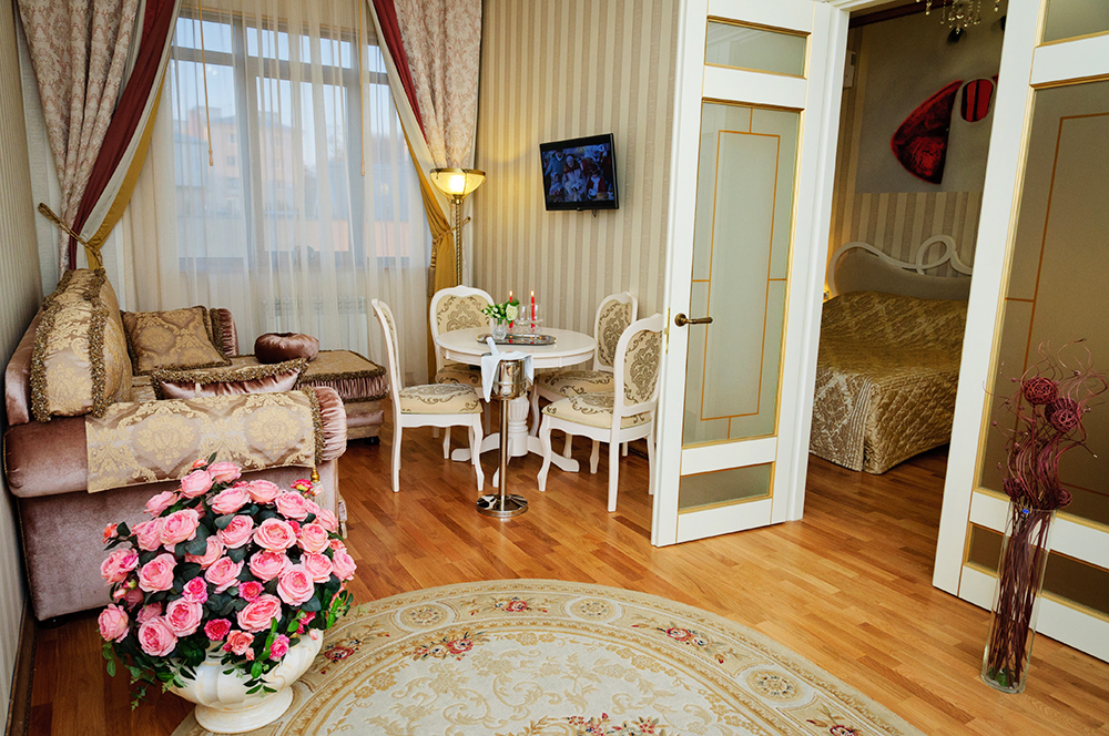 Санаторий состоит из двух корпусов - жилого и лечебного. Здравница рассчитана на единовременный прием 284 гостей в 142 комфортных номера. Отдыхающие санатория размещаются в номерах категорий: стандарт, комфорт, люкс, полулюкс, студия, апартаменты. В каждом номере есть комфортабельная мебель, санузел, фен, чайный сет, кондиционер, телефон, Wi-Fi, телевизор, холодильник, сейф, балкон. На территории санатория функционирует круглосуточная автостоянка.