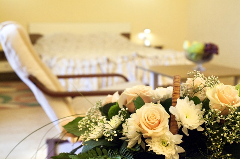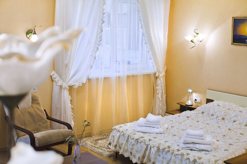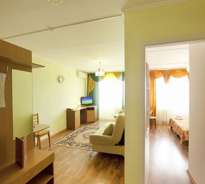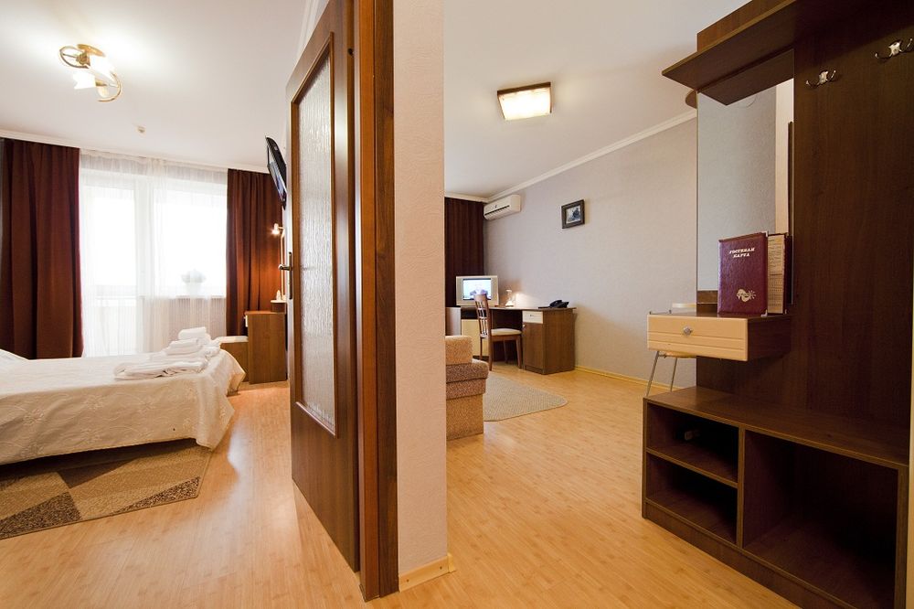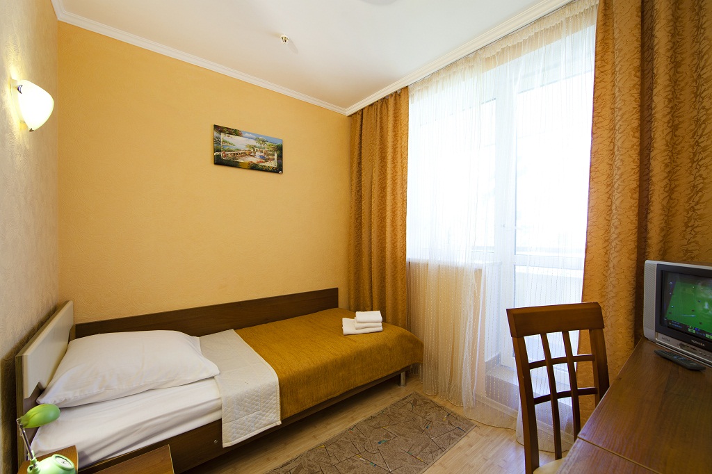 Жилой фонд санатория составляют номера категорий «стандарт», «улучшенный», «комфорт», «люкс-студио» и двухуровневый «дуплекс». Интернет проводной. Из удобств — кондиционер, сейф, туалетные принадлежности, халат, мини-бар. В стоимость путёвки включено питание по номерной диете (№1-2,4,5,6,7,8,9,15) в формате «шведский стол».