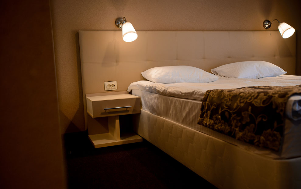 Размещение организовано в номерах различного уровня комфорта (эконом, стандарт, люкс, студия, комфорт) в корпусах №3,4 и 5, а также в гостевых домиках — «Кедровом» и «Сосновом». Номера оснащены всеми необходимыми удобствами и современной сантехникой, на кроватях — ортопедические матрасы. В «Кедровом» домике имеются стиральная машина, музыкальный центр, сауна. Wi-Fi / проводной интернет предусмотрен только в лечебном корпусе. Сейфовые ячейки находятся на стойке регистрации.