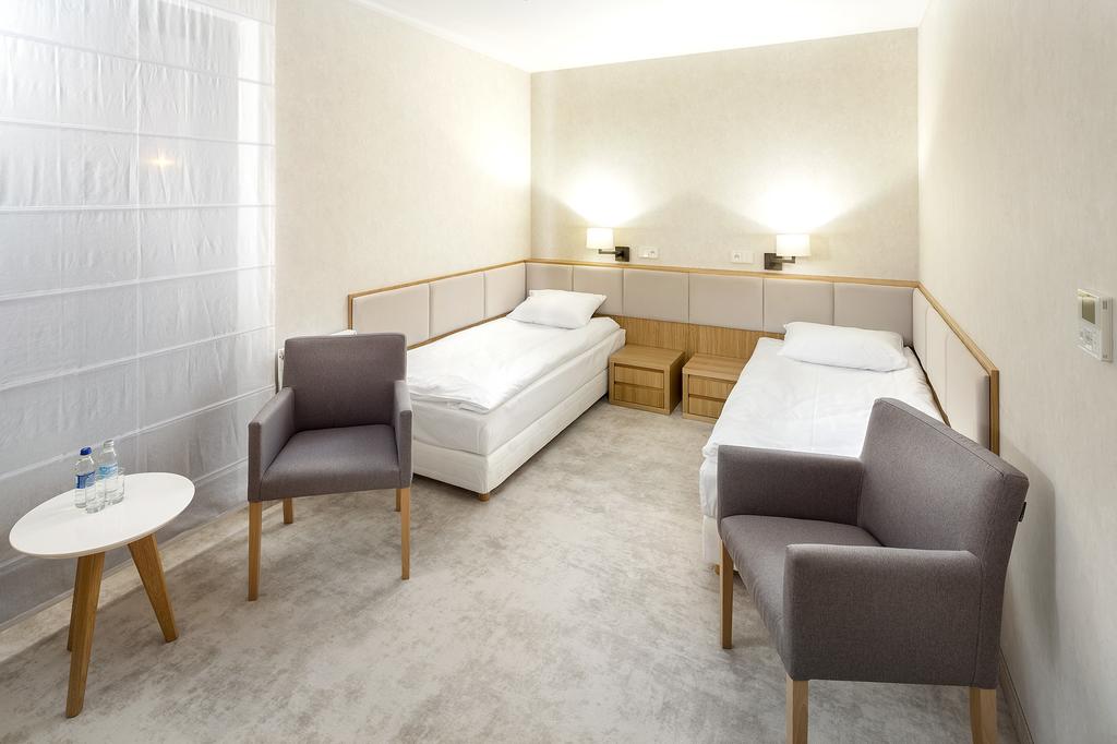 Номерной фонд оборудован для пациентов всем необходимым, в том числе для людей с ограниченными физическими возможностями, а также для лежачих больных.